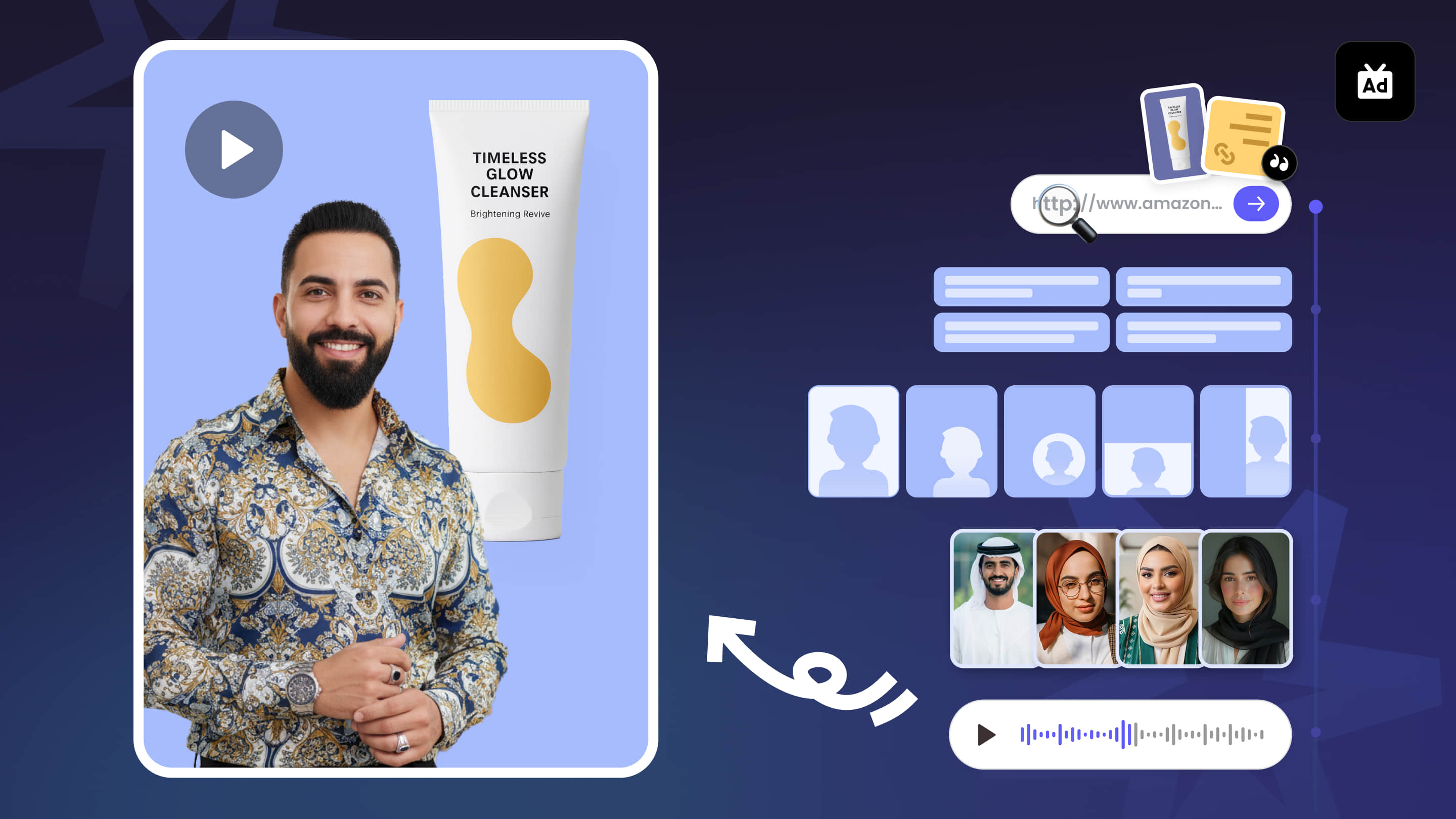 در عرض چند ثانیه میتوانید کاراکتر و صدای هوش مصنوعی مناسب برای انتقال پیام خود پیدا کنید. متن خود را اضافه کنید یا با کمک هوش مصنوعی پیام ایدهآل را بسازید و ویدیوی خود را تولید کنید.